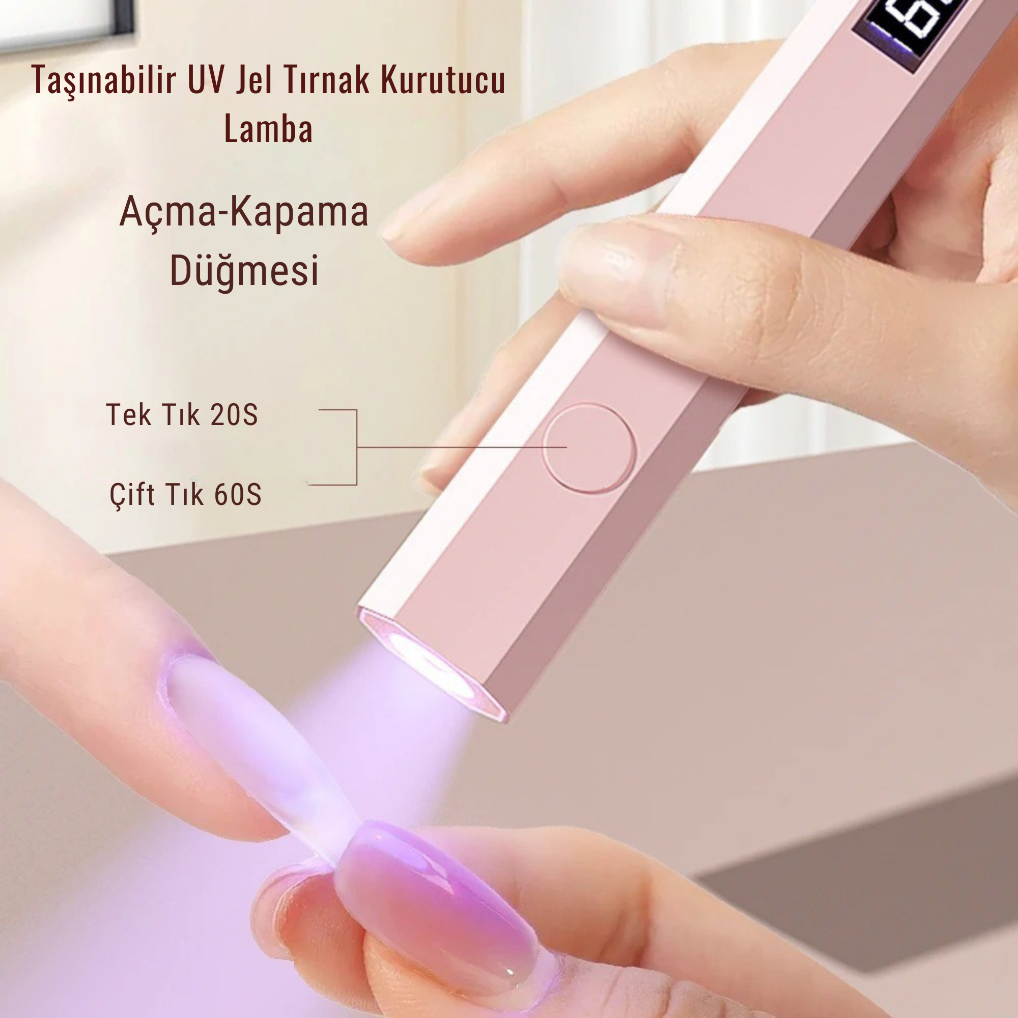 Tek tıkla 20s, çift tıkla 60s! Hızlı ve pratik UV LED tırnak kurutucu ile her an salon kalitesinde manikür imkanı!