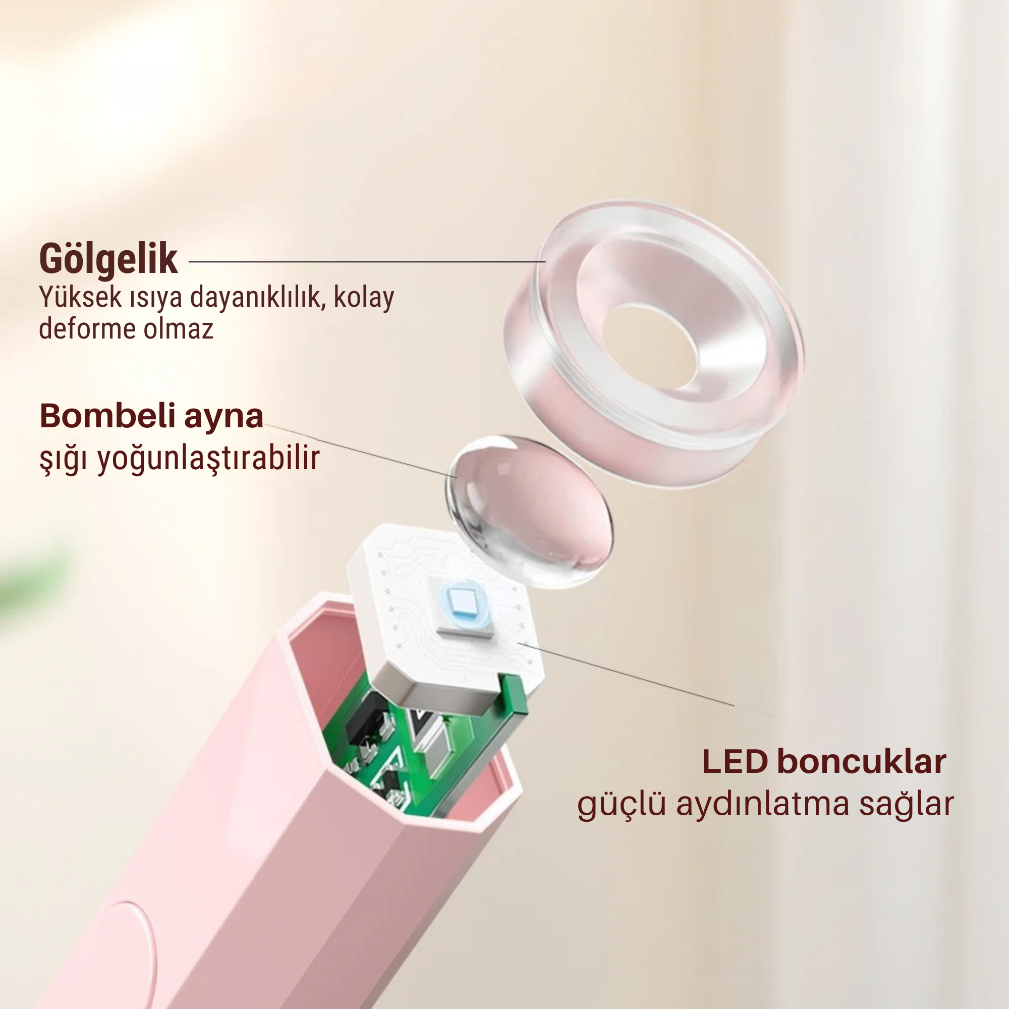Type C girişli kompakt UV/LED lamba